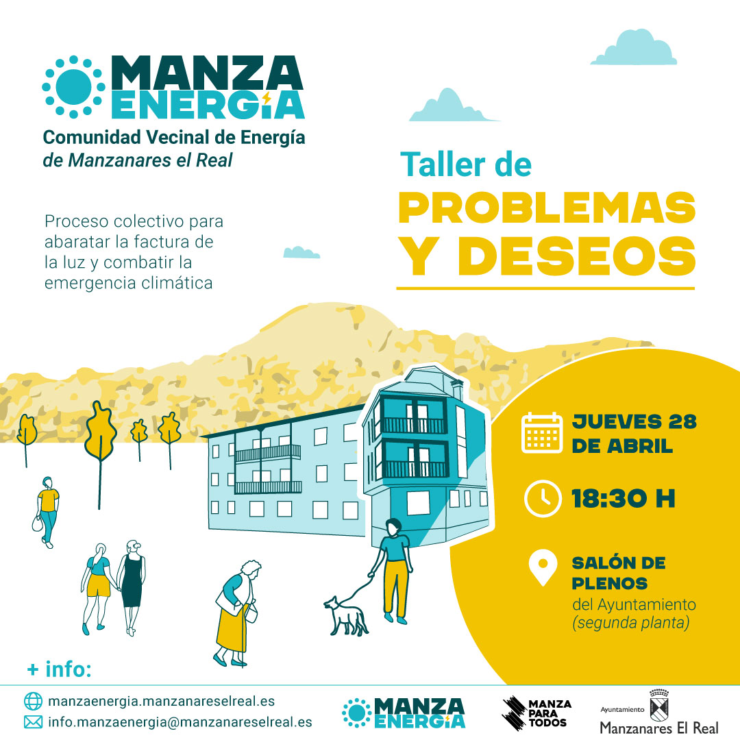 Mientras el Ayuntamiento estaba preparando las instalaciones de paneles solares en el polideportivo, y el colegio Virgen de Peña Sacra estaba avanzando con el proceso Manza 50/50, vecinos y vecinas nos encontramos para impulsar la Comunidad Vecinal de Energía. Para ello, en un semicírculo, vecinos y vecinas nos presentamos. Después, en parejas estuvimos hablando de qué problemas tenía el pueblo en relación con la energía, y qué deseos teníamos. Cuando empezamos a poner en común las ideas que habían surgido, vimos que las más importantes eran; la pobreza energética por los altos y crecientes precios, la falta de poder de la ciudadanía de hacer algo en el sistema energético para que sea más justo, la contaminación y el cambio climático, la falta de eficiencia energética, y la poca educación sobre energía. Algunos vecinos y vecinas habían instalado paneles solares o querían hacerlo, y compartieron problemas relacionadas con el precio de la instalación o la falta de información accesible; otros hablaban más de la dificultad de hacer frente a los crecientes precios de la luz, que habían llevado a demasiados hogares a una situación de pobreza energética. Los problemas son diversos, pero la Comunidad Vecinal de Energía se puede plantear como una alternativa al modelo energético actual, que es socialmente injusto y contaminante. El gran deseo que emana es conseguir más soberanía energética. Una posibilidad para ello es aumentar la producción de energía renovable del pueblo, y poder compartirla entre los hogares.